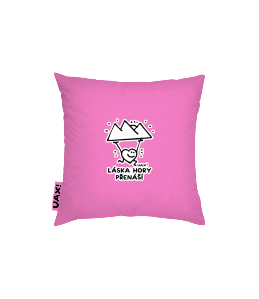 Vyrábíme udržitelné oblečení UAX! - ručně šité v Česku uaxDoplňky uaxDomácí design a doplňkyPolštářePOVLAK NA POLŠTÁŘ 40x40potisk 1264 - LÁSKA HORY PŘENÁŠÍCLASSIC PINK