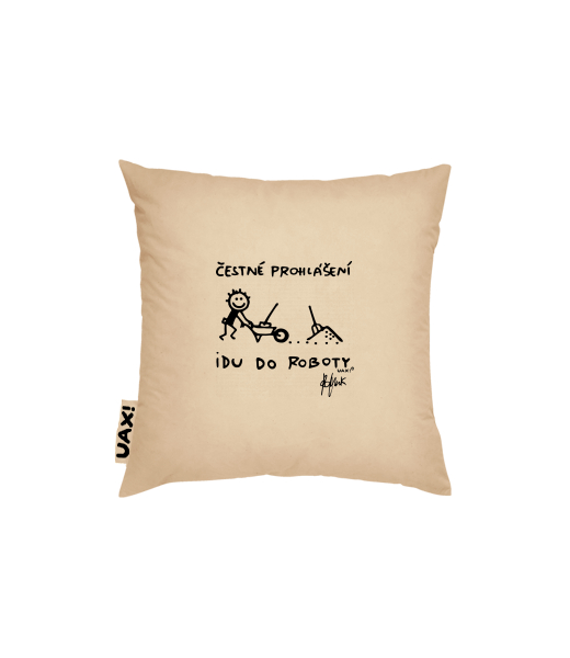 Povlak na polštář 40x40 Domácí design a doplňky s potiskem 1303 ČESTNÉ PROHLÁŠENÍ IDU DO ROBOTY v barvě CARAMEL