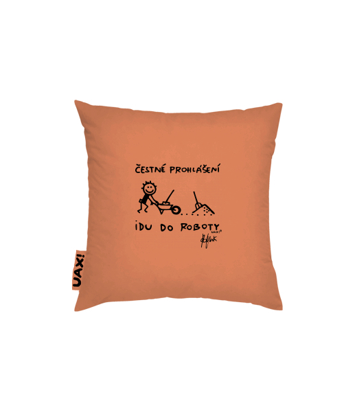 Povlak na polštář 40x40 Domácí design a doplňky s potiskem 1303 ČESTNÉ PROHLÁŠENÍ IDU DO ROBOTY v barvě MANDARIAN ORANGE