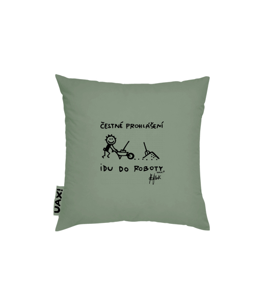 Povlak na polštář 40x40 Domácí design a doplňky s potiskem 1303 ČESTNÉ PROHLÁŠENÍ IDU DO ROBOTY v barvě OLIVA