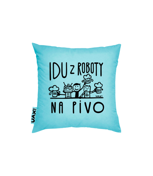 Vyrábíme udržitelné oblečení UAX! - ručně šité v Česku uaxDoplňky uaxDomácí design a doplňkyPolštářePOVLAK NA POLŠTÁŘ 40x40potisk 1369 - IDU Z ROBOTY NA PIVOPASTEL BLUE40x40