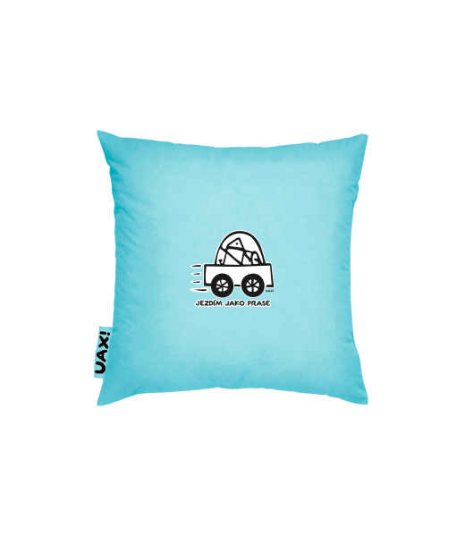 Vyrábíme udržitelné oblečení UAX! - ručně šité v Česku uaxDoplňky uaxDomácí design a doplňkyPolštářePOVLAK NA POLŠTÁŘ 50x50potisk 1072 - JEZDÍM JAKO PRASEPASTEL BLUE