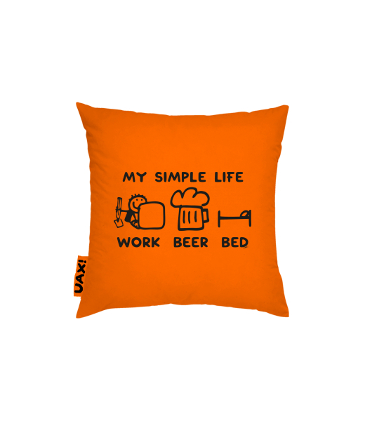 Vyrábíme udržitelné oblečení UAX! - ručně šité v Česku uaxDoplňky uaxDomácí design a doplňkyPolštářePOVLAK NA POLŠTÁŘ 50x50potisk 1211 - MY SIMPLE LIFE WORK BEER BEDSIGNAL ORANGE