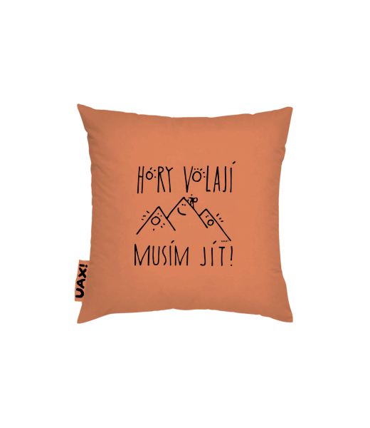 Vyrábíme udržitelné oblečení UAX! - ručně šité v Česku uaxDoplňky uaxDomácí design a doplňkyPolštářePOVLAK NA POLŠTÁŘ 50x50potisk 1233 - HORY VOLAJÍ MUSÍM JÍTMANDARIAN ORANGE