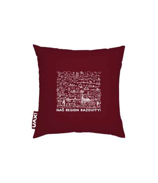 Vyrábíme udržitelné oblečení UAX! - ručně šité v Česku uaxDoplňky uaxDomácí design a doplňkyPolštářePOVLAK NA POLŠTÁŘ 50x50potisk 1267 - REGION RAZOVITYDARK RED
