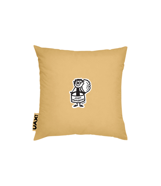 Vyrábíme udržitelné oblečení UAX! - ručně šité v Česku uaxDoplňky uaxDomácí design a doplňkyPolštářePOVLAK NA POLŠTÁŘ 50x50potisk 1352 - JSEM KONZERVA MENMUSTARD