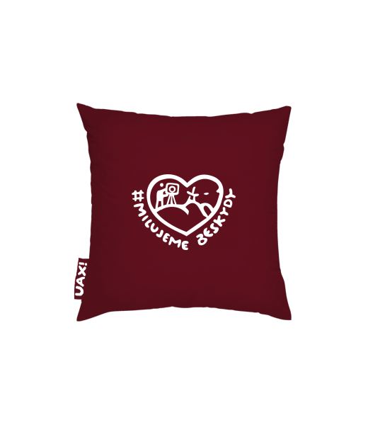 Vyrábíme udržitelné oblečení UAX! - ručně šité v Česku uaxDoplňky uaxDomácí design a doplňkyPolštářePOVLAK NA POLŠTÁŘ 50x50potisk 1356 - MILUJEME BESKYDY 2DARK RED