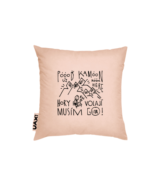 Vyrábíme udržitelné oblečení UAX! - ručně šité v Česku uaxDoplňky uaxDomácí design a doplňkyPolštářePOVLAK NA POLŠTÁŘ 50x50potisk 1368 - POOOĎ KAMOON HORY MUSÍM JÍT GOCAPPUCINO
