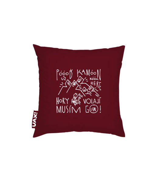 Vyrábíme udržitelné oblečení UAX! - ručně šité v Česku uaxDoplňky uaxDomácí design a doplňkyPolštářePOVLAK NA POLŠTÁŘ 50x50potisk 1368 - POOOĎ KAMOON HORY MUSÍM JÍT GODARK RED