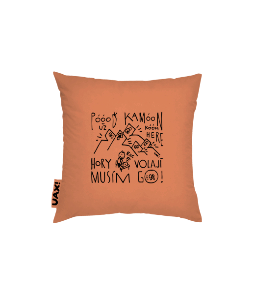 Vyrábíme udržitelné oblečení UAX! - ručně šité v Česku uaxDoplňky uaxDomácí design a doplňkyPolštářePOVLAK NA POLŠTÁŘ 50x50potisk 1368 - POOOĎ KAMOON HORY MUSÍM JÍT GOMANDARIAN ORANGE