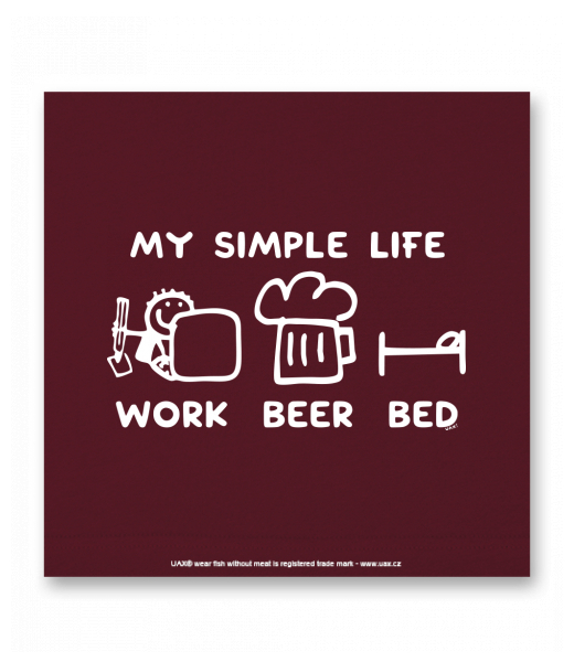 Vyrábíme udržitelné oblečení UAX! - ručně šité v Česku uaxDoplňky uaxDomácí design a doplňkyPostery na zeďMALÝ OBRAZ 40x40cmpotisk 1211 - MY SIMPLE LIFE WORK BEER BEDDARK RED