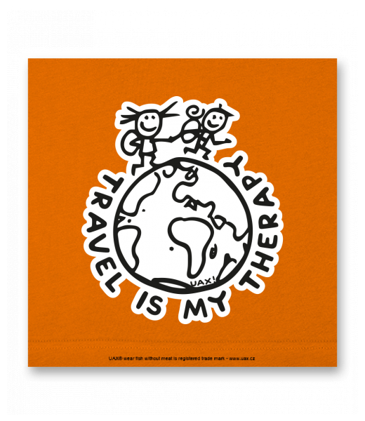Vyrábíme udržitelné oblečení UAX! - ručně šité v Česku uaxDoplňky uaxDomácí design a doplňkyPostery na zeďMALÝ OBRAZ 40x40cmpotisk 1240 - TRAVEL IS MY THERAPYSIGNAL ORANGE