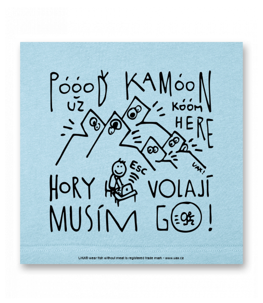 Vyrábíme udržitelné oblečení UAX! - ručně šité v Česku uaxDoplňky uaxDomácí design a doplňkyPostery na zeďOBRAZ DO INTERIÉRU 110x110cmpotisk 1368 - POOOĎ KAMOON HORY MUSÍM JÍT GOPASTEL BLUE110x110cm