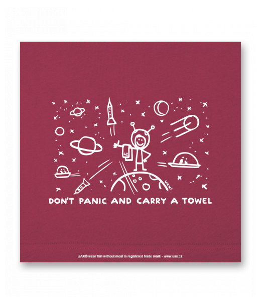 Vyrábíme udržitelné oblečení UAX! - ručně šité v Česku uaxDoplňky uaxDomácí design a doplňkyPostery na zeďPOSTER UAX! 80x80cmpotisk 1156 - DON'T PANIC GALAXYCHILLY PEPPER RED