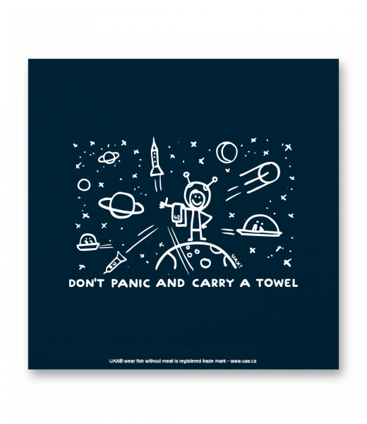 Vyrábíme udržitelné oblečení UAX! - ručně šité v Česku uaxDoplňky uaxDomácí design a doplňkyPostery na zeďPOSTER UAX! 80x80cmpotisk 1156 - DON'T PANIC GALAXYDARK NAVY