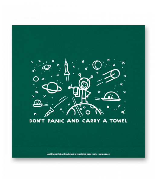 Vyrábíme udržitelné oblečení UAX! - ručně šité v Česku uaxDoplňky uaxDomácí design a doplňkyPostery na zeďPOSTER UAX! 80x80cmpotisk 1156 - DON'T PANIC GALAXYUNIVERSITY GREEN