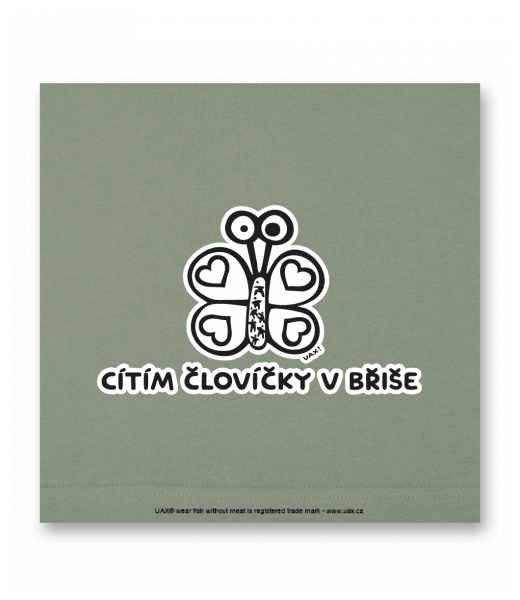 Vyrábíme udržitelné oblečení UAX! - ručně šité v Česku uaxDoplňky uaxDomácí design a doplňkyPostery na zeďPOSTER UAX! 80x80cmpotisk 1188 - CÍTÍM ČLOVÍČKY V BŘIŠEOLIVA