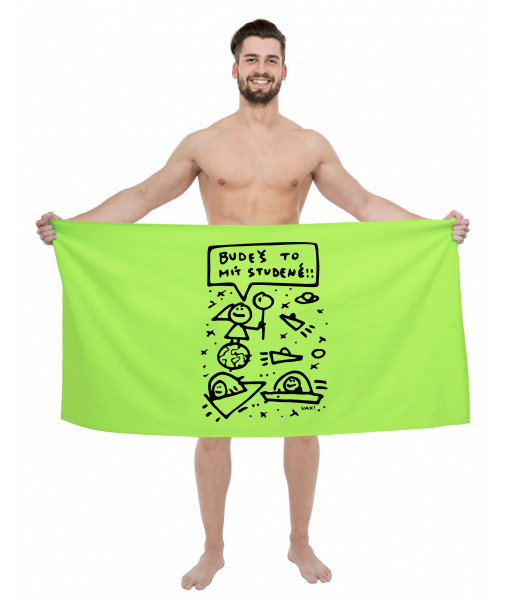 Originální osuška Domácí design a doplňky s potiskem 1386 BUDEŠ TO MÍT STUDENÉ v barvě FLUO GREEN