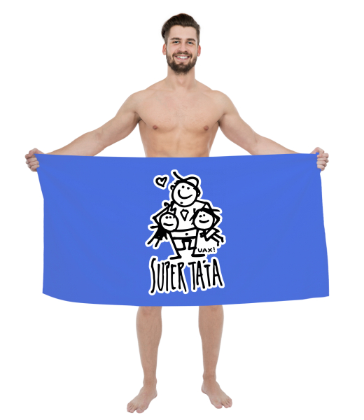 Originální osuška Domácí design a doplňky s potiskem 1390 SUPER TÁTA v barvě CAPRI BLUE