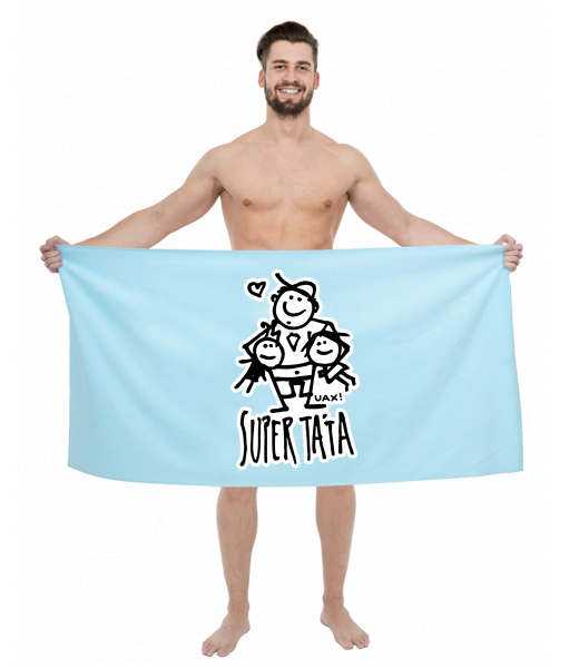 Originální osuška Domácí design a doplňky s potiskem 1390 SUPER TÁTA v barvě PASTEL BLUE