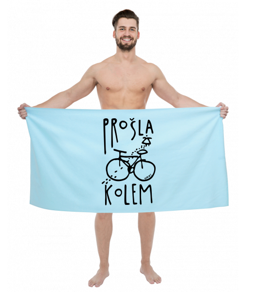 Originální osuška Domácí design a doplňky s potiskem 1395 PROŠLA KOLEM v barvě PASTEL BLUE
