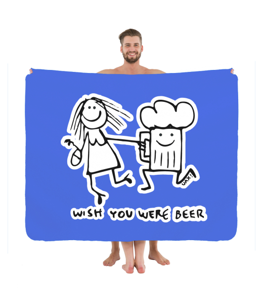 Vyrábíme udržitelné oblečení UAX! - ručně šité v Česku uaxDoplňky uaxDomácí design a doplňkyRučníky a osuškyPIKNIK DEKA S POTISKEMpotisk 1049 - WISH YOU WERE BEERCAPRI BLUE