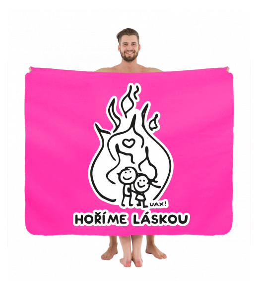 Vyrábíme udržitelné oblečení UAX! - ručně šité v Česku uaxDoplňky uaxDomácí design a doplňkyRučníky a osuškyPIKNIK DEKA S POTISKEMpotisk 1208 - HOŘÍME LÁSKOUFLUO PINK