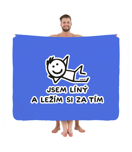 Vyrábíme udržitelné oblečení UAX! - ručně šité v Česku uaxDoplňky uaxDomácí design a doplňkyRučníky a osuškyPIKNIK DEKA S POTISKEMpotisk 1217 - JSEM LÍNÝ A LEŽÍM SI ZA TÍMCAPRI BLUE