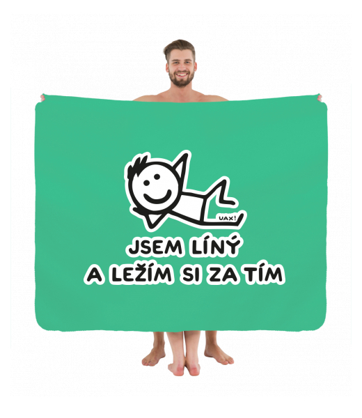 Vyrábíme udržitelné oblečení UAX! - ručně šité v Česku uaxDoplňky uaxDomácí design a doplňkyRučníky a osuškyPIKNIK DEKA S POTISKEMpotisk 1217 - JSEM LÍNÝ A LEŽÍM SI ZA TÍMEUCALYPTO GREEN