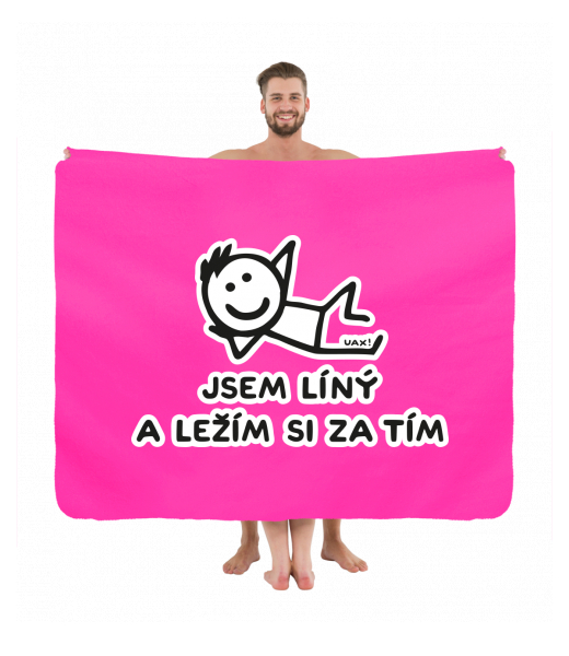 Vyrábíme udržitelné oblečení UAX! - ručně šité v Česku uaxDoplňky uaxDomácí design a doplňkyRučníky a osuškyPIKNIK DEKA S POTISKEMpotisk 1217 - JSEM LÍNÝ A LEŽÍM SI ZA TÍMFLUO PINK
