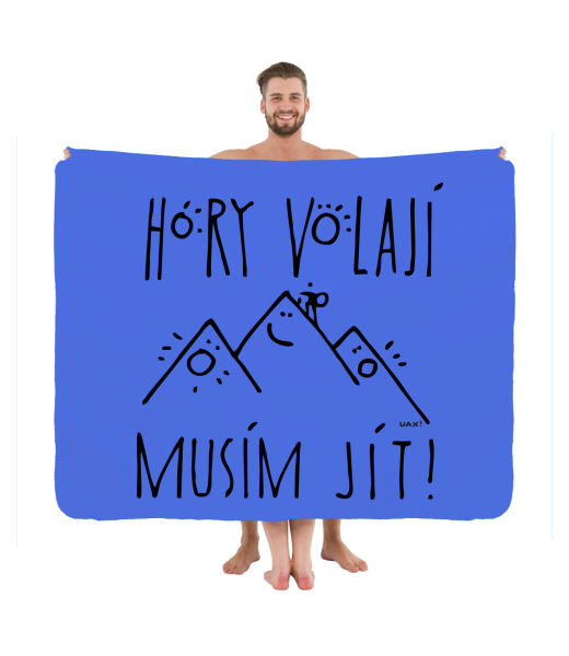Vyrábíme udržitelné oblečení UAX! - ručně šité v Česku uaxDoplňky uaxDomácí design a doplňkyRučníky a osuškyPIKNIK DEKA S POTISKEMpotisk 1233 - HORY VOLAJÍ MUSÍM JÍTCAPRI BLUE
