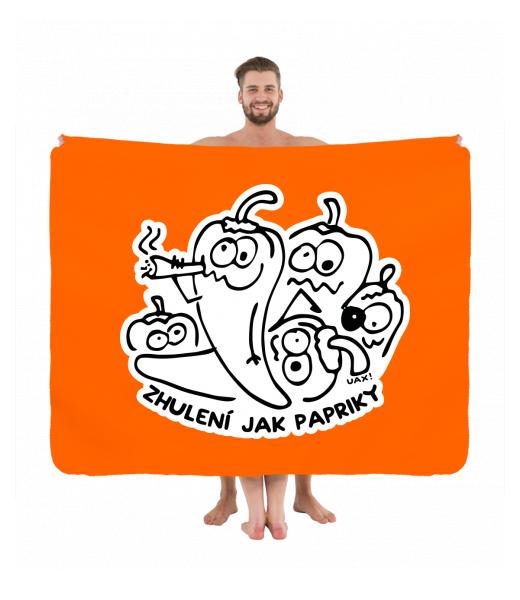 Vyrábíme udržitelné oblečení UAX! - ručně šité v Česku uaxDoplňky uaxDomácí design a doplňkyRučníky a osuškyPIKNIK DEKA S POTISKEMpotisk 1245 - ZHULENÍ JAK PAPRIKYSIGNAL ORANGE