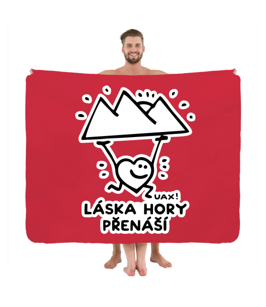 Originální deka na piknik Domácí design a doplňky s potiskem 1264 LÁSKA HORY PŘENÁŠÍ v barvě RED