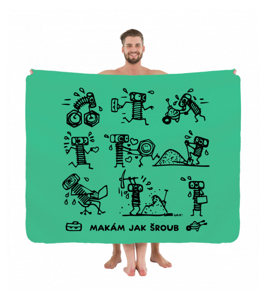 Vyrábíme udržitelné oblečení UAX! - ručně šité v Česku uaxDoplňky uaxDomácí design a doplňkyRučníky a osuškyPIKNIK DEKA S POTISKEMpotisk 1343 - MAKÁM JAK ŠROUB 2EUCALYPTO GREEN