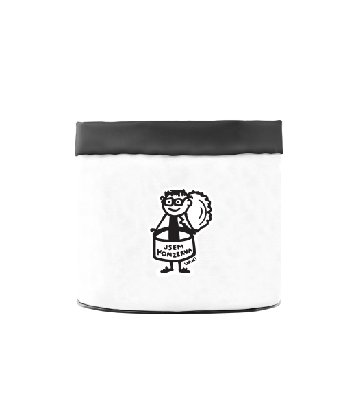 Vyrábíme udržitelné oblečení UAX! - ručně šité v Česku uaxDoplňky uaxDomácí design a doplňkyTašky a pytlíkyKVĚTINÁČ 15cmpotisk 1352 - JSEM KONZERVA MENWHITE