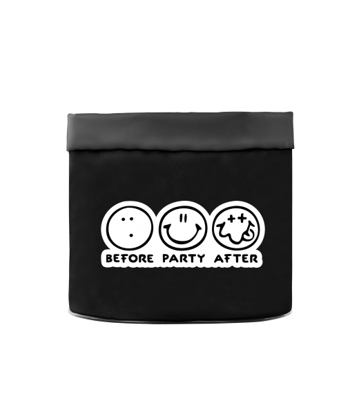 Vyrábíme udržitelné oblečení UAX! - ručně šité v Česku uaxDoplňky uaxDomácí design a doplňkyTašky a pytlíkyKVĚTINÁČ 19cmpotisk 1120 - BEFORE PARTY AFTERBLACK