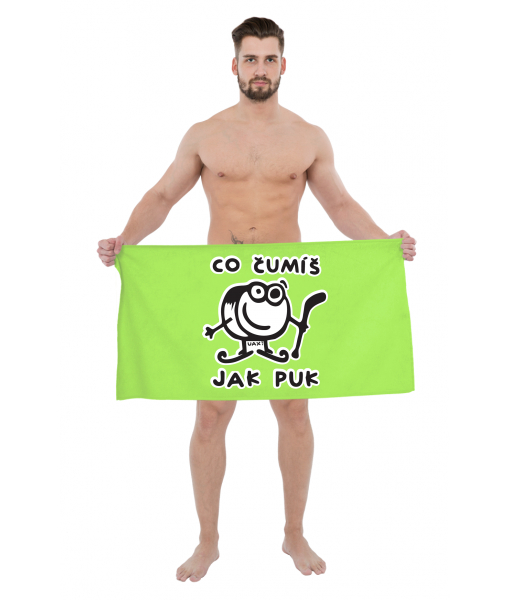 Vyrábíme udržitelné oblečení UAX! - ručně šité v Česku uaxDoplňky uaxGolf kolekceRučníky a osuškyRUČNÍK S POTISKEMpotisk 1101 - ČUMÍŠ JAK PUKFLUO GREEN