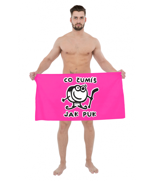 Vyrábíme udržitelné oblečení UAX! - ručně šité v Česku uaxDoplňky uaxGolf kolekceRučníky a osuškyRUČNÍK S POTISKEMpotisk 1101 - ČUMÍŠ JAK PUKFLUO PINK