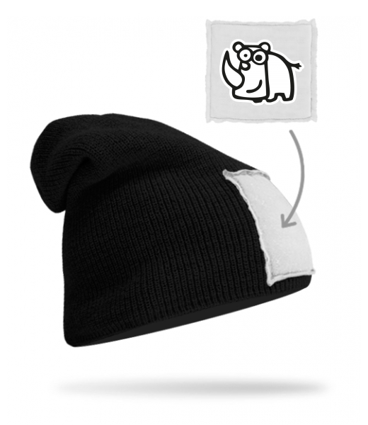 Vyrábíme udržitelné oblečení UAX! - ručně šité v Česku uaxDoplňky uaxLyžařská kolekceČepice a čelenkyPLETENÁ ČEPICE BEANIEpotisk 1140 - NOSOROŽECBLACK/WHITE