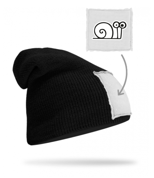 Vyrábíme udržitelné oblečení UAX! - ručně šité v Česku uaxDoplňky uaxLyžařská kolekceČepice a čelenkyPLETENÁ ČEPICE BEANIEpotisk 1153 - ŠNEKBLACK/WHITE