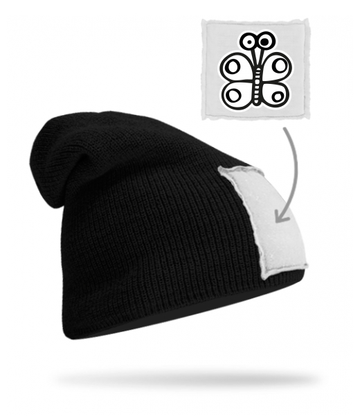 Vyrábíme udržitelné oblečení UAX! - ručně šité v Česku uaxDoplňky uaxLyžařská kolekceČepice a čelenkyPLETENÁ ČEPICE BEANIEpotisk 1154 - MOTÝLBLACK/WHITE