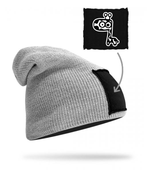 Vyrábíme udržitelné oblečení UAX! - ručně šité v Česku uaxDoplňky uaxLyžařská kolekceČepice a čelenkyPLETENÁ ČEPICE BEANIEpotisk 1155 - ŽIRAFAGREY/BLACK