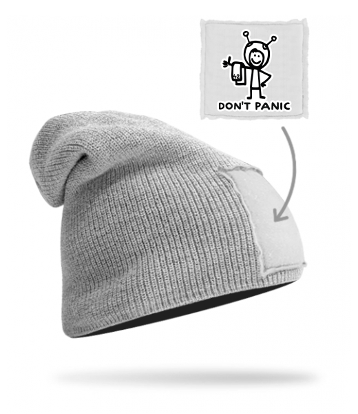 Vyrábíme udržitelné oblečení UAX! - ručně šité v Česku uaxDoplňky uaxLyžařská kolekceČepice a čelenkyPLETENÁ ČEPICE BEANIEpotisk 1157 - DON'T PANICGREY/WHITE