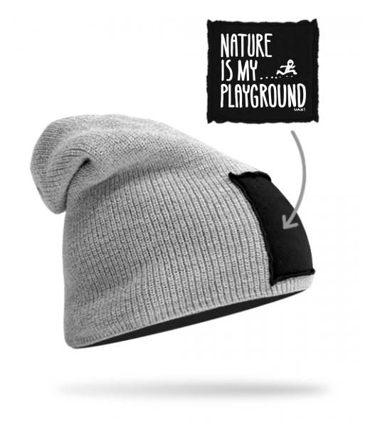 Pletená čepice BEANIE unisex Lyžařská kolekce s potiskem 1160 NATURE IS MY PLAYGROUND v barvě GREY/BLACK