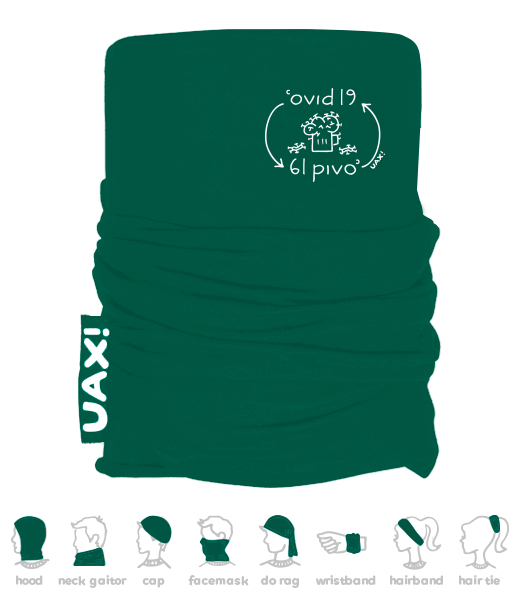 Vyrábíme udržitelné oblečení UAX! - ručně šité v Česku uaxDoplňky uaxLyžařská kolekceMultifunkční šátkyMULTIFUNKČNÍ BAVLNĚNÝ ŠÁTEKpotisk 1297 - COVID 6L PIVOUNIVERSITY GREEN