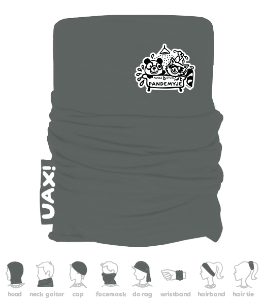 Vyrábíme udržitelné oblečení UAX! - ručně šité v Česku uaxDoplňky uaxLyžařská kolekceMultifunkční šátkyMULTIFUNKČNÍ BAVLNĚNÝ ŠÁTEKpotisk 1299 - PANDEMYJEDARK GRAY
