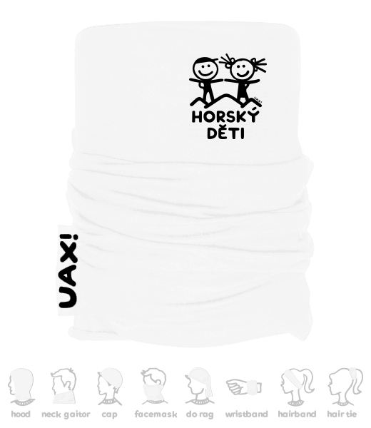 Vyrábíme udržitelné oblečení UAX! - ručně šité v Česku uaxDoplňky uaxLyžařská kolekceMultifunkční šátkyMULTIFUNKČNÍ BAVLNĚNÝ ŠÁTEKpotisk 1300 - HORSKÝ DĚTIWHITE