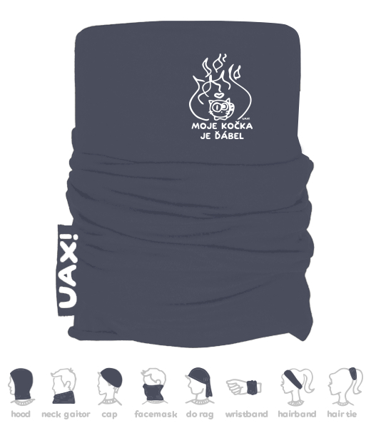 Vyrábíme udržitelné oblečení UAX! - ručně šité v Česku uaxDoplňky uaxLyžařská kolekceMultifunkční šátkyMULTIFUNKČNÍ BAVLNĚNÝ ŠÁTEKpotisk 1326 - MOJE KOČKA JE ĎÁBELGRAY INK