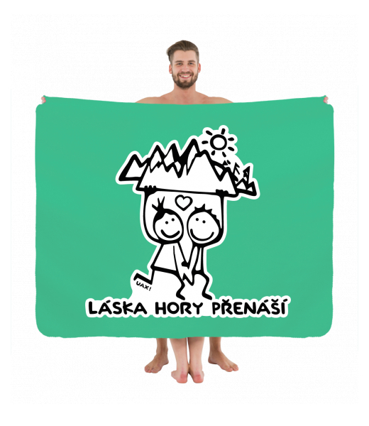 Originální deka na piknik s potiskem 1128 LÁSKA HORY PŘENÁŠÍ v barvě EUCALYPTO GREEN