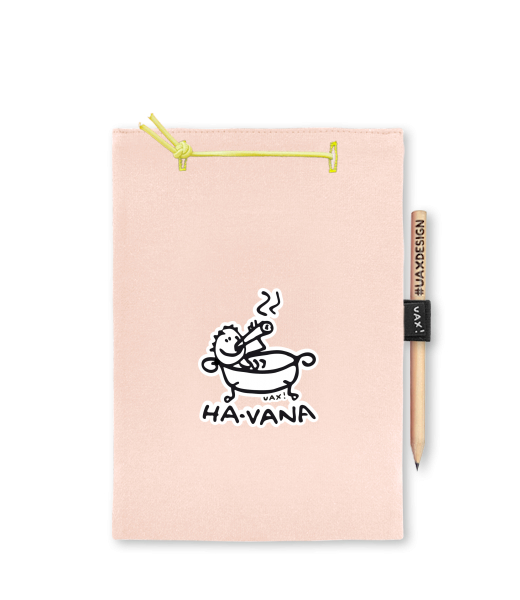 Blok A4 s vyměnitelnými papíry. Na přední straně možnost výběru z více než 300 potisků. Vyrobeno ze 100% bavlny. Výběr z 28 barev. Tiskneme ručním sítotiskem. V horní části blok A4 stažen žlutou gumičkou. 60 listů s perforací pro snadnější odtržení. Žlutá guma ve spodní části pro zajištění obalu. K bloku získáte i tužku #UAXDESIGN
